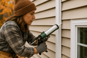 Inspect and recaulk all siding joints, window trim, and door frames annually. Remove old, cracked caulk completely before applying new. Choose polyurethane caulk for Canadian temperature extremes. Apply when temperatures range between 5°C and 30°C for proper curing.