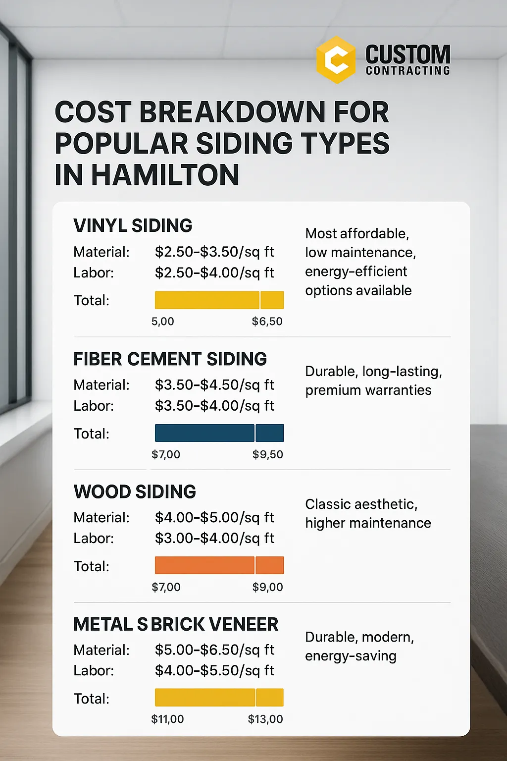 Understanding the cost breakdown for various siding types is essential for making an informed decision in Hamilton. This section provides a detailed overview of the expected price points for different siding materials and installation services. The cost includes material, labor, additional insulation, and other related charges that contribute to the overall expense of the project. Given Hamilton’s market dynamics and local contractor rates, homeowners have a range of options that influence both short-term expenditures and long-term investment returns.