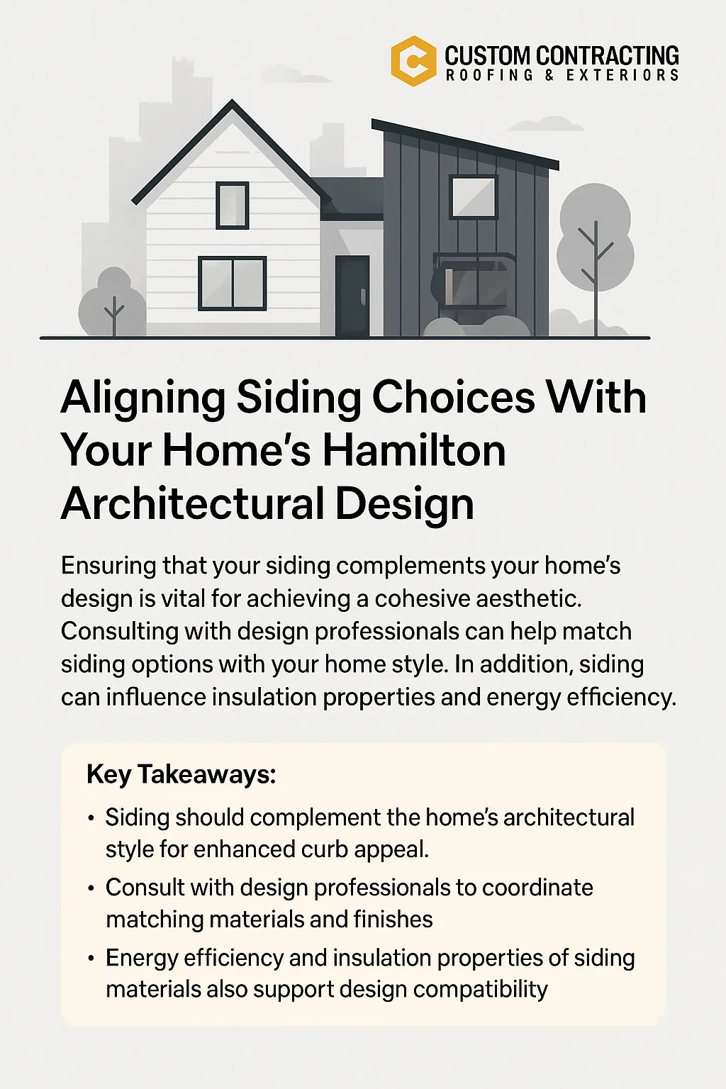 Key Takeaways: - Siding should complement the home's architectural style for enhanced curb appeal. - Consult with design professionals to coordinate matching materials and finishes. - Energy efficiency and insulation properties of siding materials also support design compatibility.